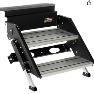 Lippert Solid Step 4.0 Premium Double RV Camper Entry Steps with 26″ Step Width, XL Top Tread, 8″ Rise, 500-lb. Weight Capacity, Adjustable Legs, Recessed Feet, Foldable Design – 2024056996