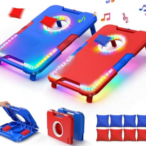 Light-Up Cornhole Board Set, Corn hole Sets with Sound Effects, 2 Foldable Boards & 8 Bean Bags, Portable Outdoor Toss game, Backyard Party Camping Toys Gifts for Kids,Teens,Family,Ages 6-12+