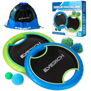 Trampoline Paddle Ball Set with 2 Bouncy Paddles & 4 Balls – Soft Foam Design for Kids Play Indoor Outdoor Beach Backyard Lawn – Great Gift Idea for Boys & Girls