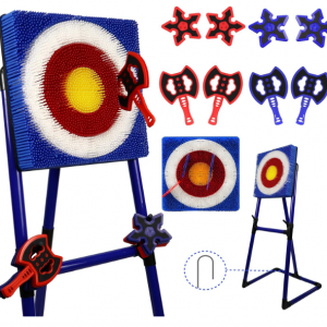 BunnyBoo Family Axe Throwing Game for Backyard Fun | Safe Bristle Target Set with 4 Axes & 4 Darts for Kids & Adults | Lightweight & Portable for Carnival, Camping, Party and Indoor/Outdoor Games