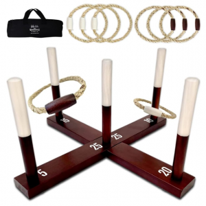 Swooc Games – Rustic Ring Toss Game (All Weather) – Easy Setup & Extra Games Included – Ring Toss Game for Adults – Outdoor Activities for Adults – Yard Toys for Kids – Backyard Fun – Outdoor Party