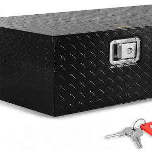 FORWODE Trailer Tongue Box 39 Inch Aluminum Tongue Tool Box Lockable Trailer Tool Chest with Gas Strut, Secure Diamond Plate Truck Tongue Tool Box for Trailer, Truck Bed, Pickup & RV Storage (Black)