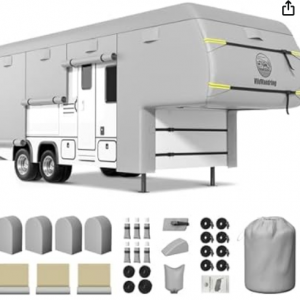 Click to see full view Ask Rufus What are some good ways to maintain this RV cover? Can this cover be used for long-term storage? Does this cover protect against UV rays? Why you might like this Compare with similar Ask something else Heavy Duty Travel Trailer 5th Wheel RV Cover 23-26ft, 8 Layers Breathable Waterproof Rip-Stop Camper Cover with Adhesive Repair Patches, Gutter, Tire & Additional Straps