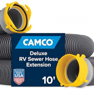 Camco 39665 Deluxe 10′ Sewer Hose Extension – Heavy Duty Design with Swivel Fittings, Easy To Use and Compresses For Simple Storage, Storage Caps Included, Gray