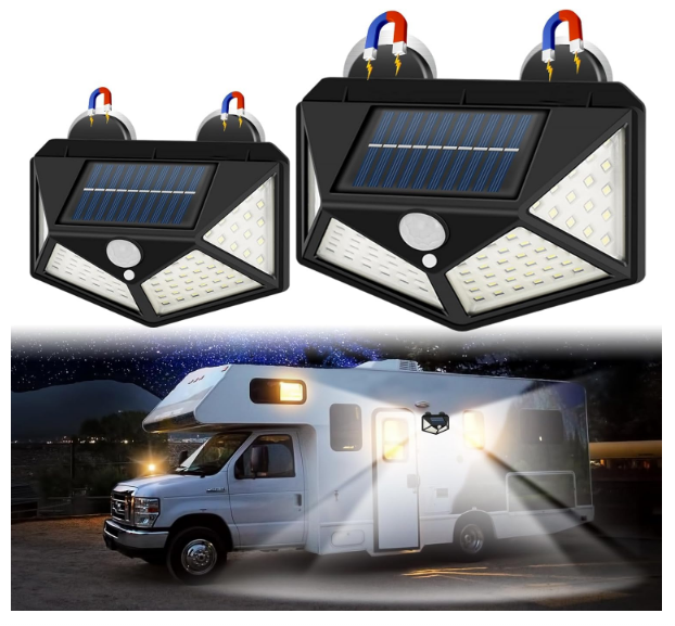 - Ultra-Bright 100 LEDs with Wide Coverage: Illuminate large areas with 270° wide-angle lighting powered by 100 ultra-bright LEDs. The enhanced PIR motion sensor detects motion within 16.4 ft, instantly lighting up RV steps, raised beds, patio paths, or carport entries. These RV lights exterior are built to enhance safety and convenience