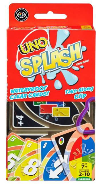 Mattel Games UNO Splash Card Game with Waterproof Cards and Portable Clip for Travel, Camping and Game Nights Away