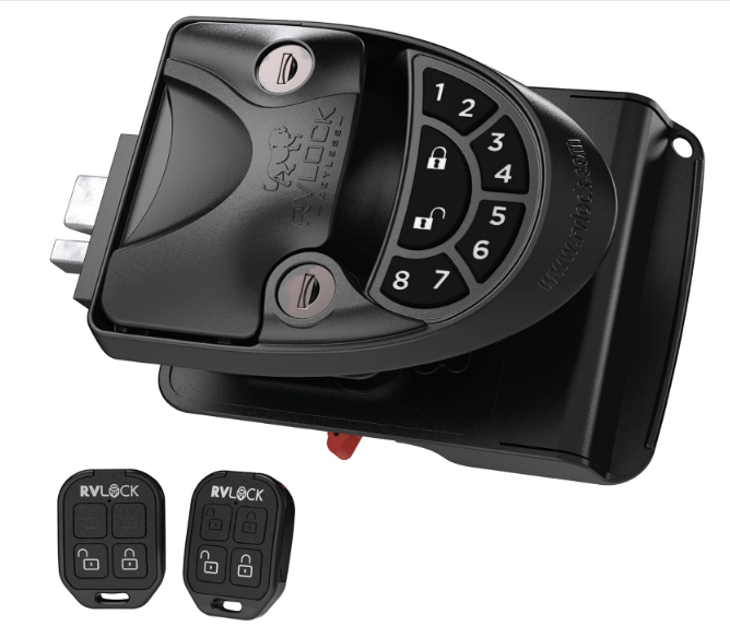 - DESIGNED FOR YOU: The RVLock V4 is packed with features to make your life easier—including a simple-to-program keypad, convenient key fobs, a weatherproof exterior, 6-9 months of battery life, and a quick 10-minute installation.